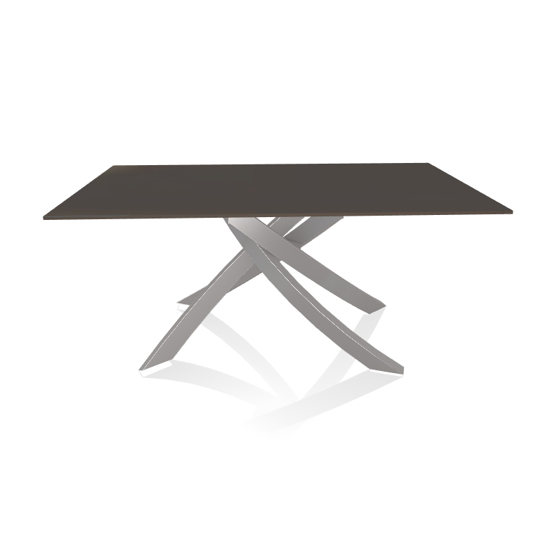 BONTEMPI table avec structure gris clair ARTISTICO 20.13 160x90 cm (Laquè anthracite brillant - Plateau en verre et structure en acier laqué gris clair)