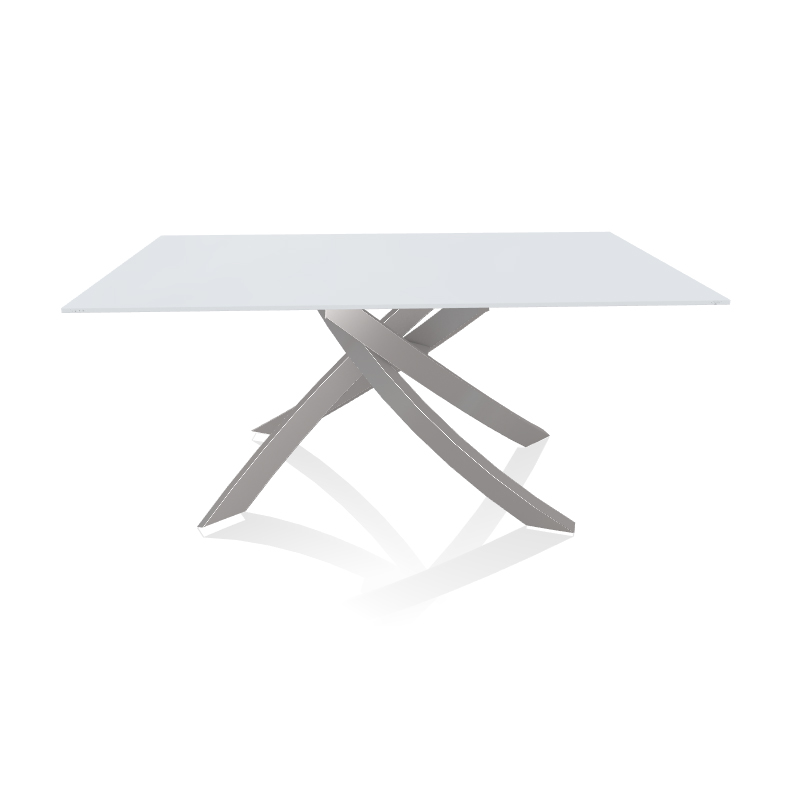 BONTEMPI table avec structure gris clair ARTISTICO 20.13 160x90 cm (Anti-rayures blanc opaque - Plateau en verre et structure en acier laqué gris clair)