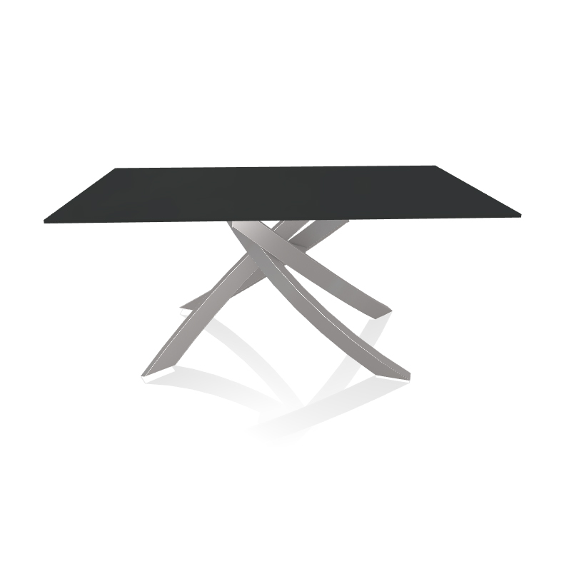 BONTEMPI table avec structure gris clair ARTISTICO 20.13 160x90 cm (Anti-rayures anthracite opaque - Plateau en verre et structure en acier laqué gris clair)
