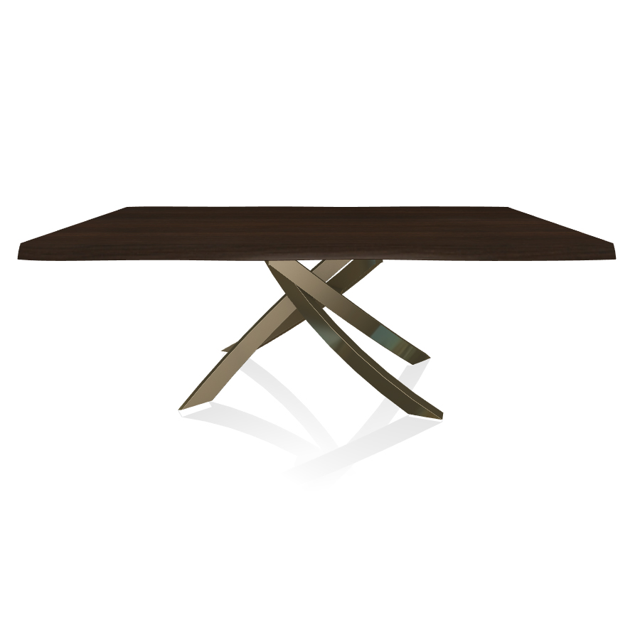 BONTEMPI table avec structure laiton vielli ARTISTICO 20.01 200x106 cm (Noyer - Plateau en bois plaqué avec bords massif irrégulier et structure en acier laqué laiton vielli)