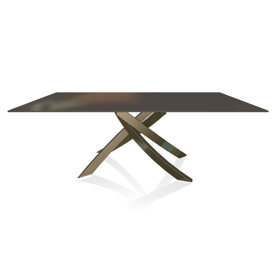 BONTEMPI table avec structure laiton vielli ARTISTICO 20.01 200x106 cm (Laquè anthracite brillant - Plateau en verre et structure en acier laqué laiton vielli)