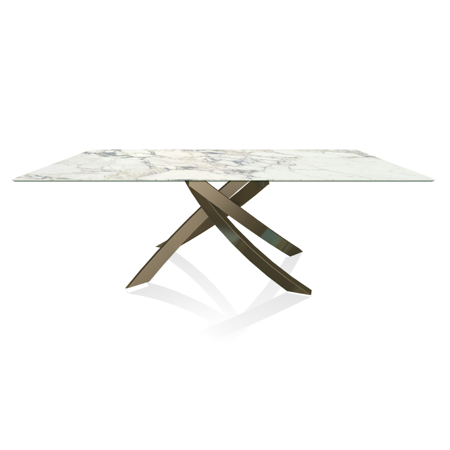 BONTEMPI table avec structure laiton vielli ARTISTICO 20.01 200x106 cm (Arabescato brillant - Plateau en SuperMarbre et structure en acier laqué laiton vielli)