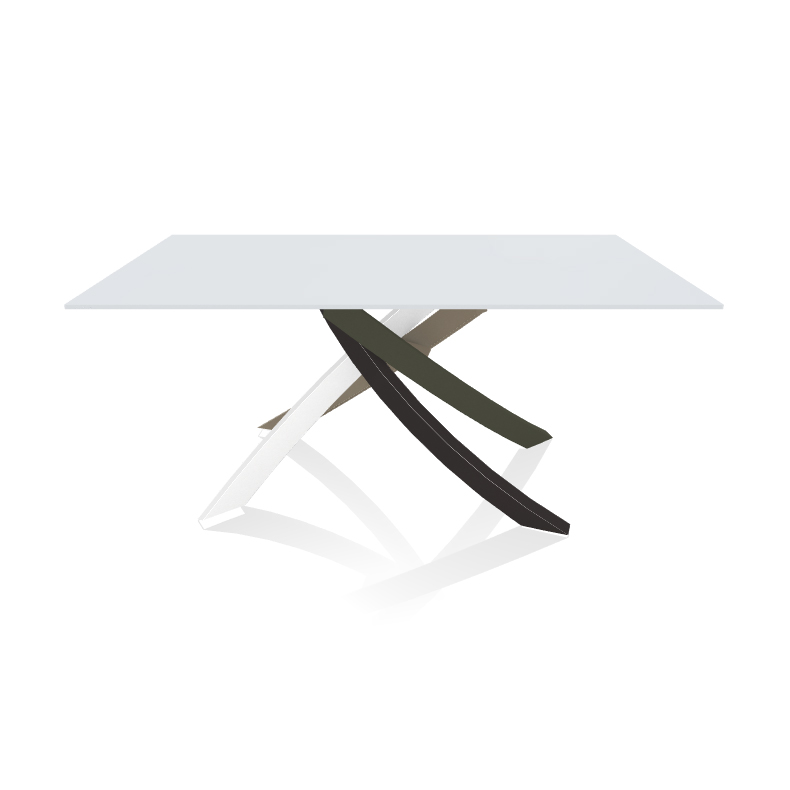 BONTEMPI table avec structure multicolor elegant ARTISTICO 20.13 160x90 cm (Anti-rayures blanc opaque - Plateau en verre et structure en acier laqué multicolor elegant)