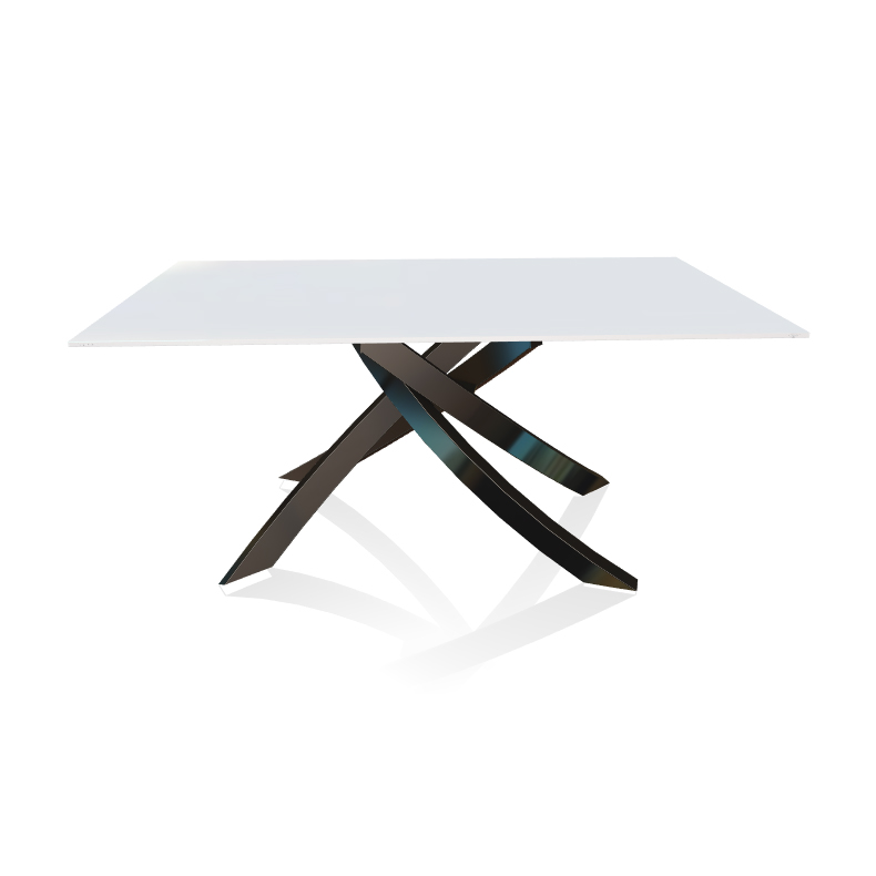 BONTEMPI table avec structure noir poli ARTISTICO 20.13 160x90 cm (Extrawhite brillant - Plateau en verre et structure en acier laqué noir poli)