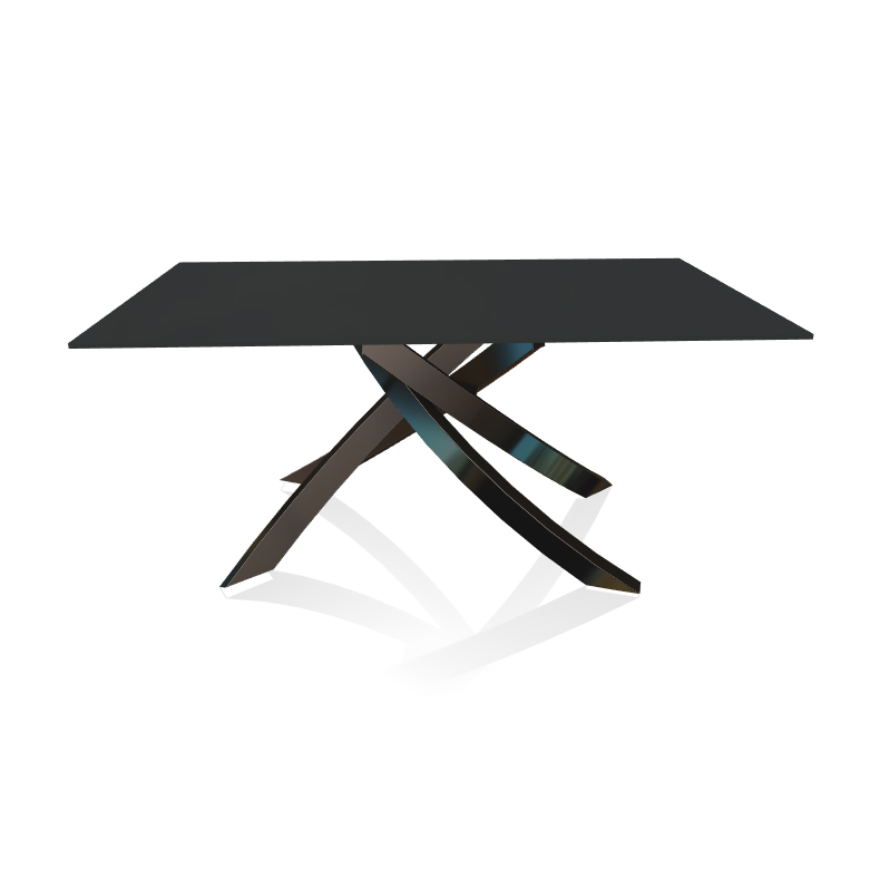 BONTEMPI table avec structure noir poli ARTISTICO 20.13 160x90 cm (Anti-rayures anthracite opaque - Plateau en verre et structure en acier laqué noir poli)