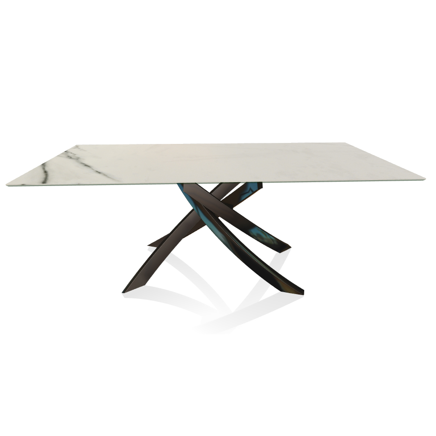 BONTEMPI table avec structure noir poli ARTISTICO 52.45 200x100 cm (Blanc Statuario mat - Plateau en SuperMarbre et structure en acier laqué noir poli)