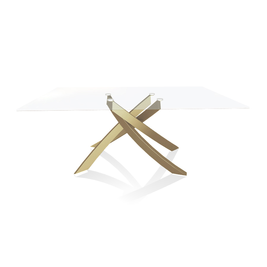BONTEMPI table avec structure or ARTISTICO 20.00 180x106 cm (Transparent extra-clair - Plateau en verre et structure en acier laqué or)