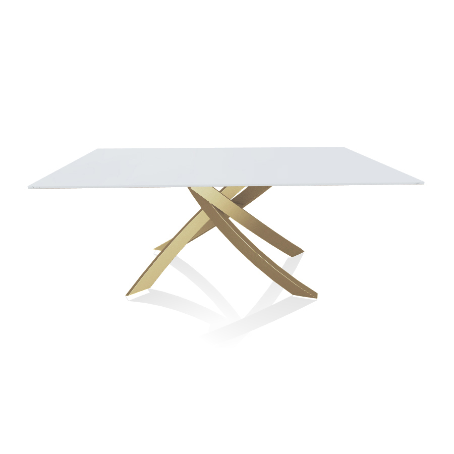 BONTEMPI table avec structure or ARTISTICO 20.00 180x106 cm (Anti-rayures blanc opaque - Plateau en verre et structure en acier laqué or)