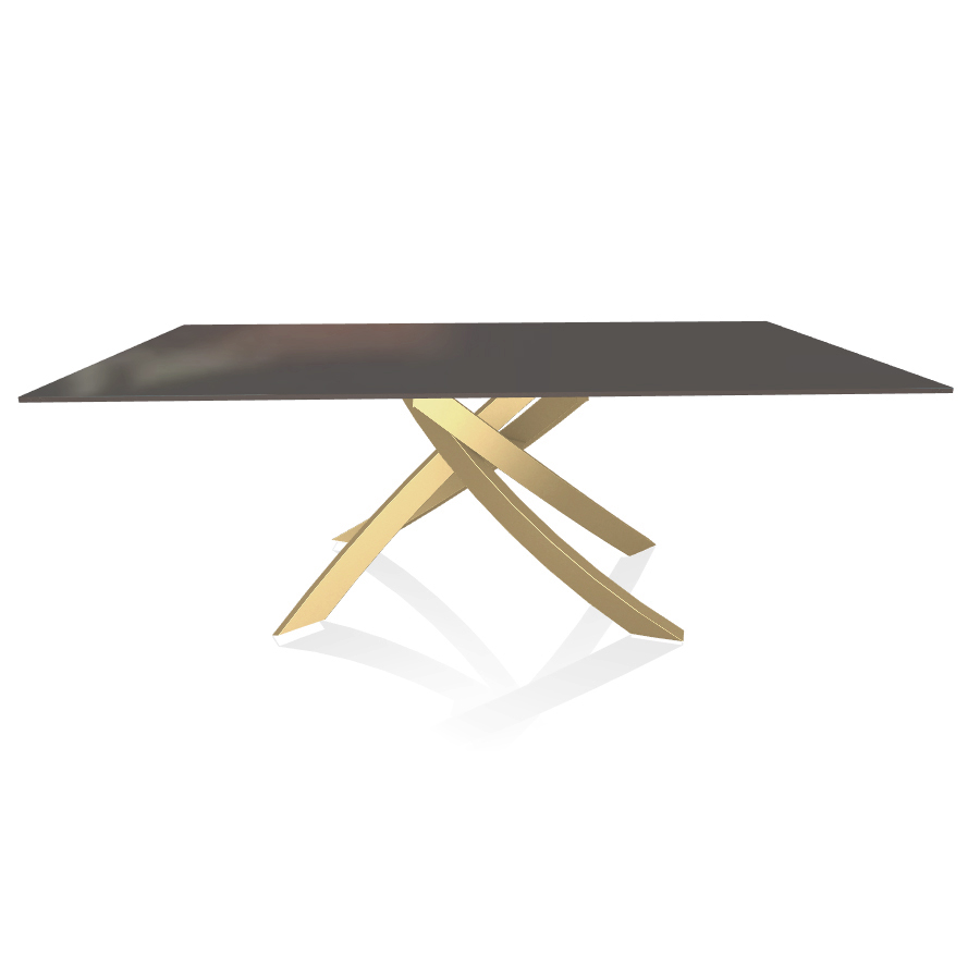 BONTEMPI table avec structure or ARTISTICO 20.01 200x106 cm (Transparent fumé - Plateau en verre et structure en acier laqué or)
