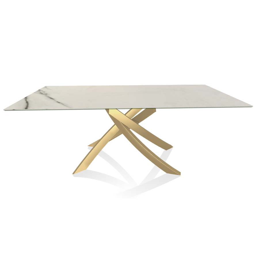 BONTEMPI table avec structure or ARTISTICO 52.45 200x100 cm (Blanc Statuario mat - Plateau en SuperMarbre et structure en acier laqué or)