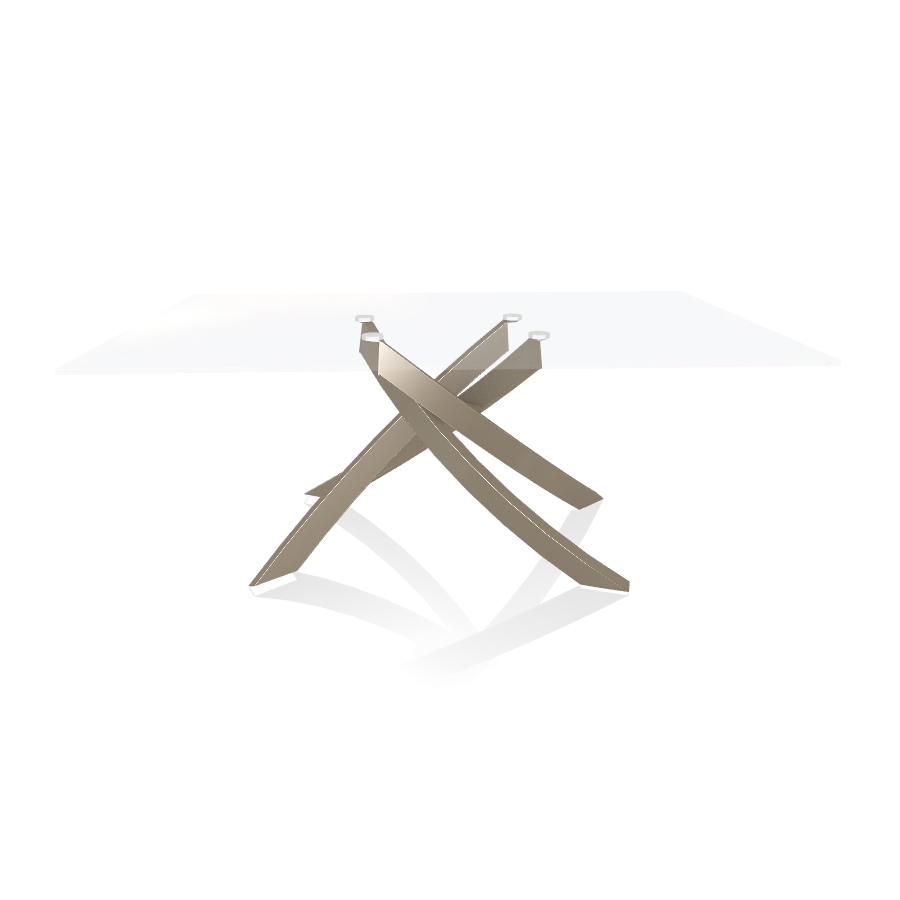BONTEMPI table avec structure sable ARTISTICO 20.00 180x106 cm (Transparent extra-clair - Plateau en verre et structure en acier laqué sable)
