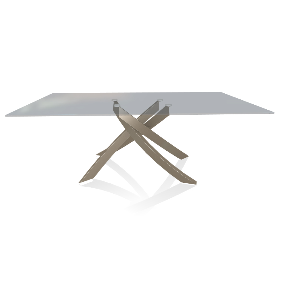 BONTEMPI table avec structure sable ARTISTICO 20.01 200x106 cm (Transparent fumé - Plateau en verre et structure en acier laqué sable)