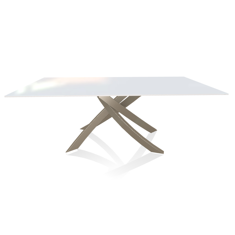 BONTEMPI table avec structure sable ARTISTICO 20.01 200x106 cm (Extrawhite brillant - Plateau en verre et structure en acier laqué sable)