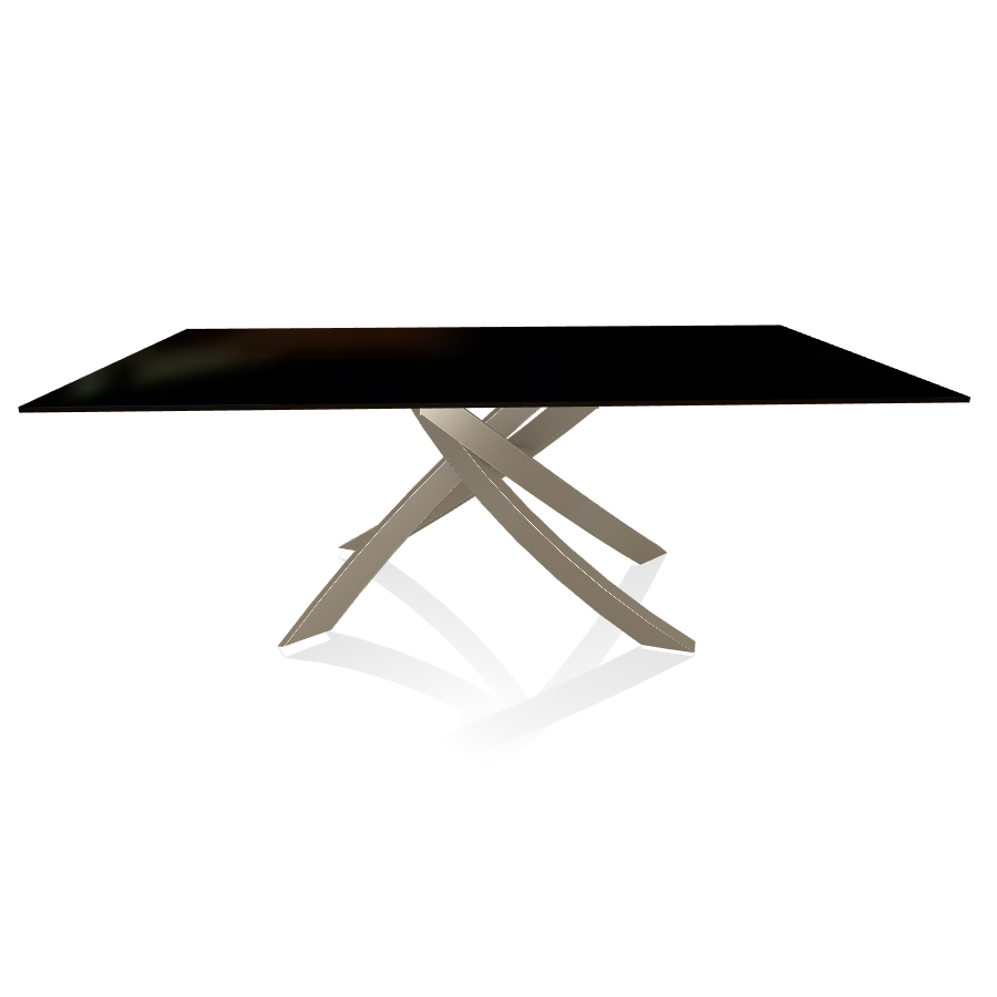 BONTEMPI table avec structure sable ARTISTICO 20.01 200x106 cm (Laqué noir brillant - Plateau en verre et structure en acier laqué sable)