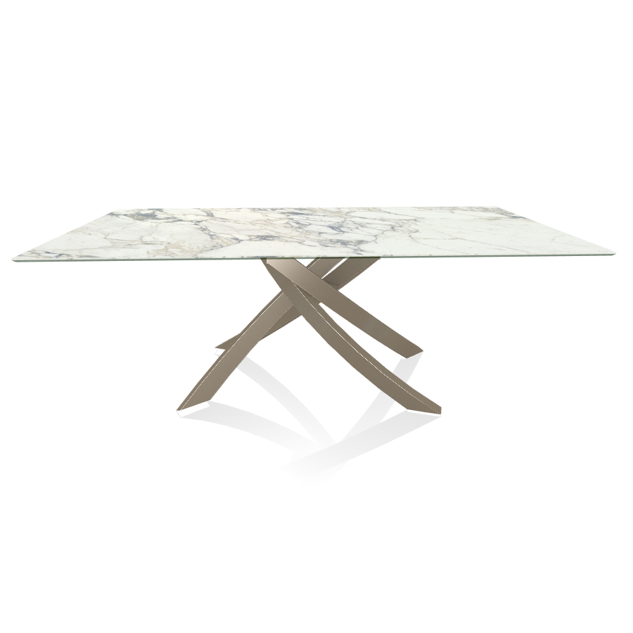 BONTEMPI table avec structure sable ARTISTICO 20.01 200x106 cm (Arabescato brillant - Plateau en SuperMarbre et structure en acier laqué sable)