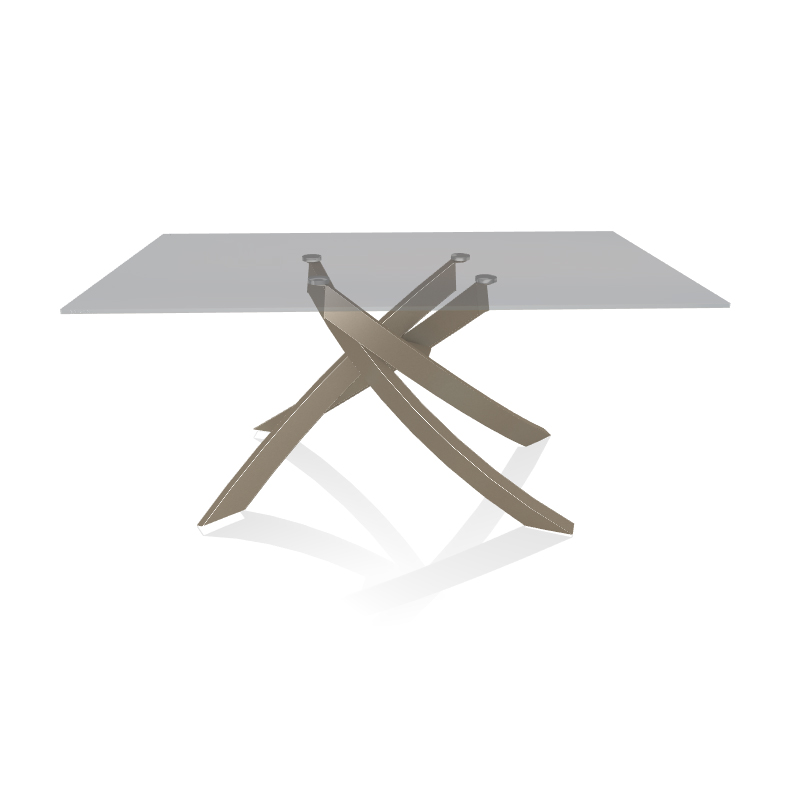 BONTEMPI table avec structure sable ARTISTICO 20.13 160x90 cm (Transparent fumé - Plateau en verre et structure en acier laqué sable)
