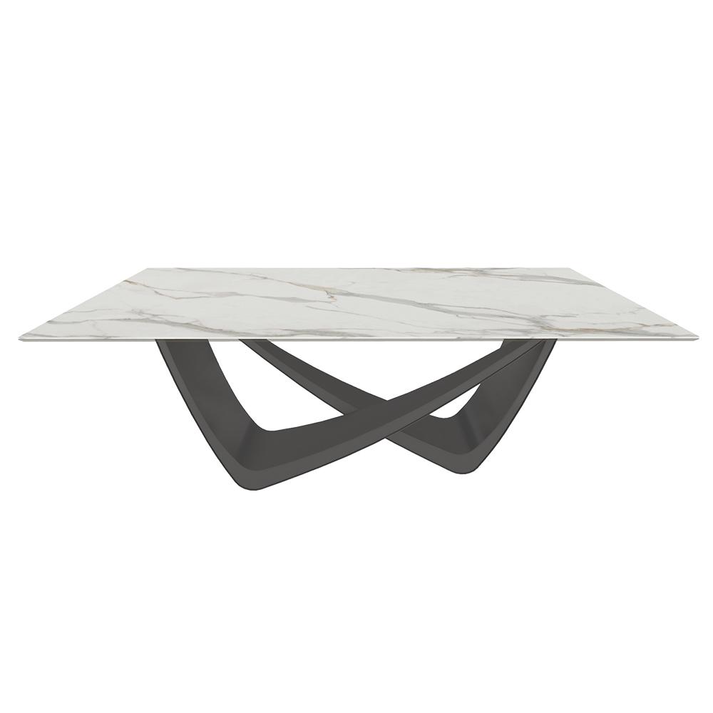 BONTEMPI table fixe rectangulaire avec structure anthracite BACH 53.80 200x100 cm (SuperMarmo Calacatta Supreme opaco - Struttura in acciaio laccato antracite e piano in ceramica e cristallo)