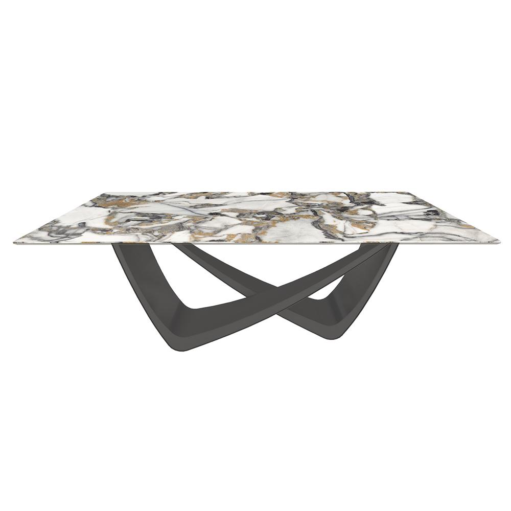 BONTEMPI table fixe rectangulaire avec structure anthracite BACH 53.80 200x100 cm (SuperMarmo Étoile Gold lucido - Struttura in acciaio laccato antracite e piano in ceramica e cristallo)