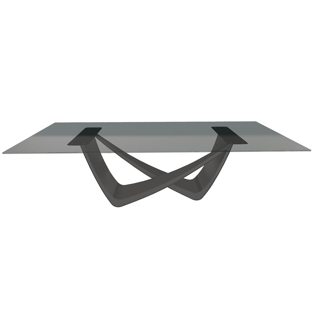BONTEMPI table fixe rectangulaire avec structure anthracite BACH 53.82 250x100 cm (Transparent fumé - Struttura in acciaio laccato antracite e piano in cristallo)