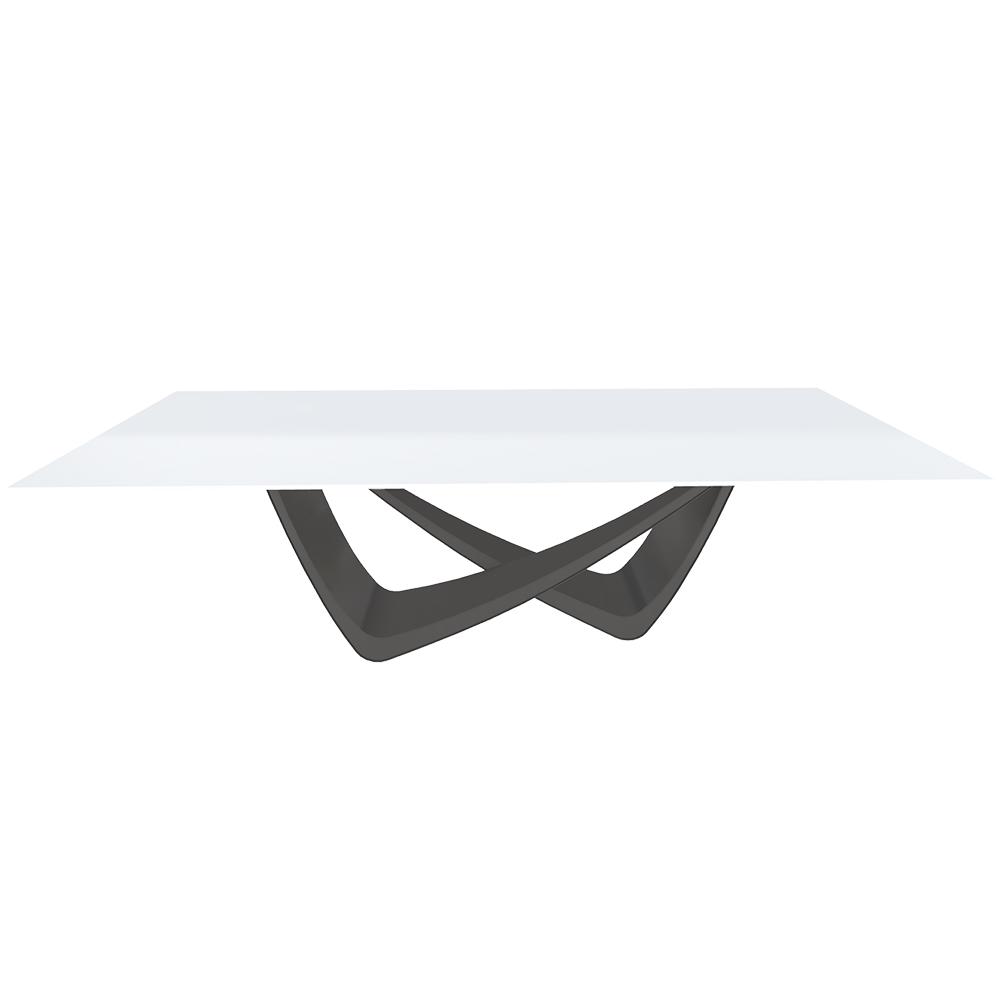 BONTEMPI table fixe rectangulaire avec structure anthracite BACH 53.82 250x100 cm (Laccato extra white lucido - Struttura in acciaio laccato antracite e piano in cristallo)
