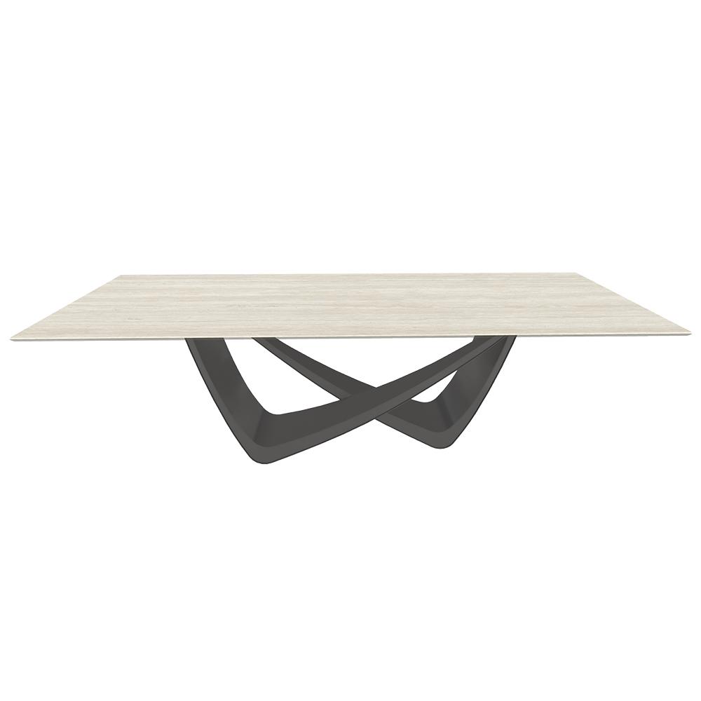 BONTEMPI table fixe rectangulaire avec structure anthracite BACH 53.82 250x100 cm (SuperMarmo Travertino bianco pietra opaco - Struttura in acciaio laccato antracite e piano in ceramica e cristallo)