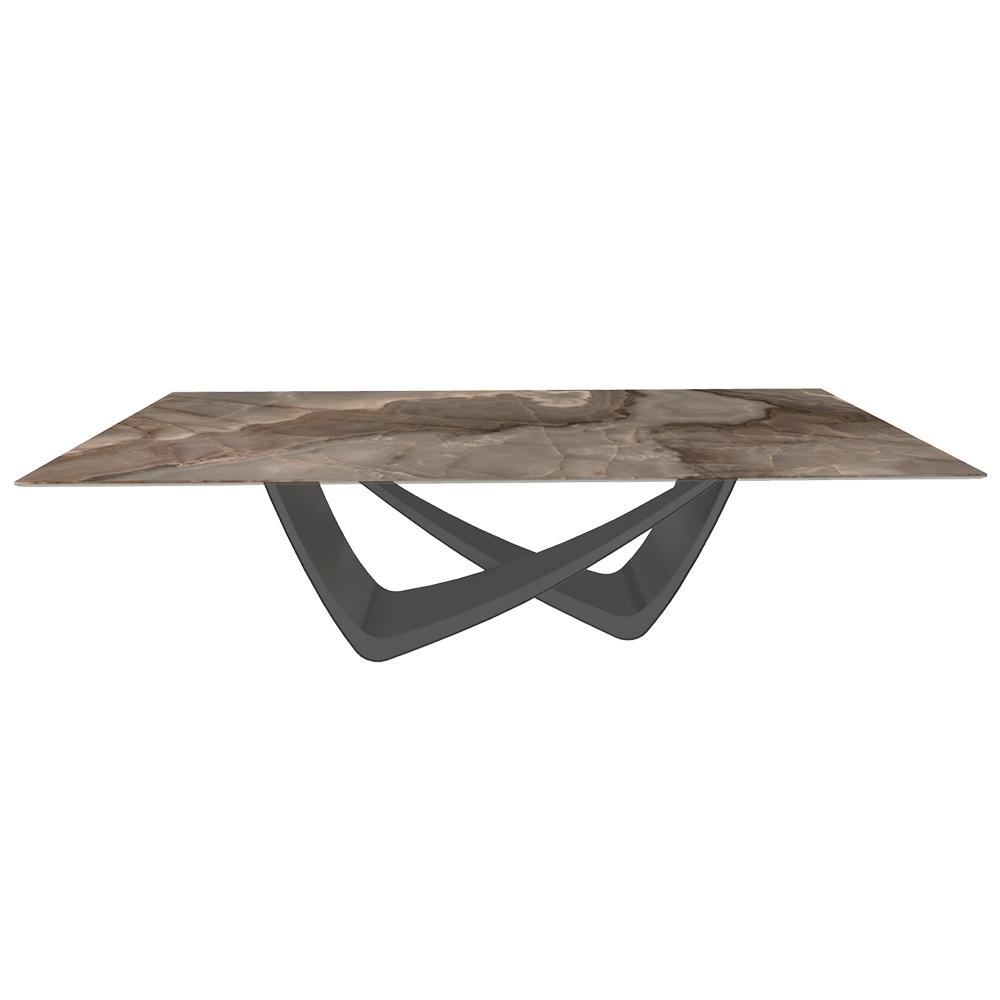 BONTEMPI table fixe rectangulaire avec structure anthracite BACH 53.82 250x100 cm (SuperMarmo Choco lucido - Struttura in acciaio laccato antracite e piano in ceramica e cristallo)