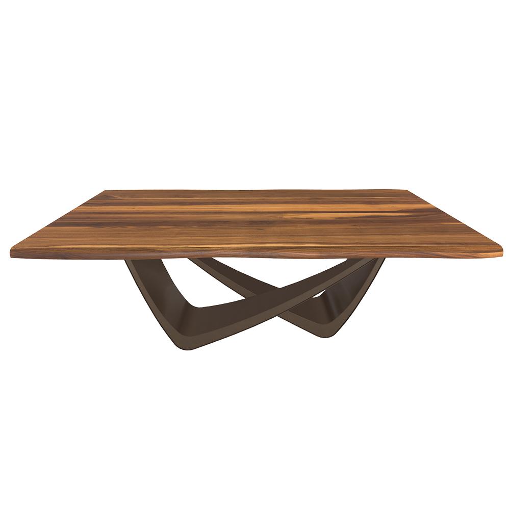 BONTEMPI table fixe rectangulaire avec structure laiton foncé BACH 53.80 200x100 cm (Noyer - Struttura in acciaio laccato antracite e piano in legno massello scortecciato)