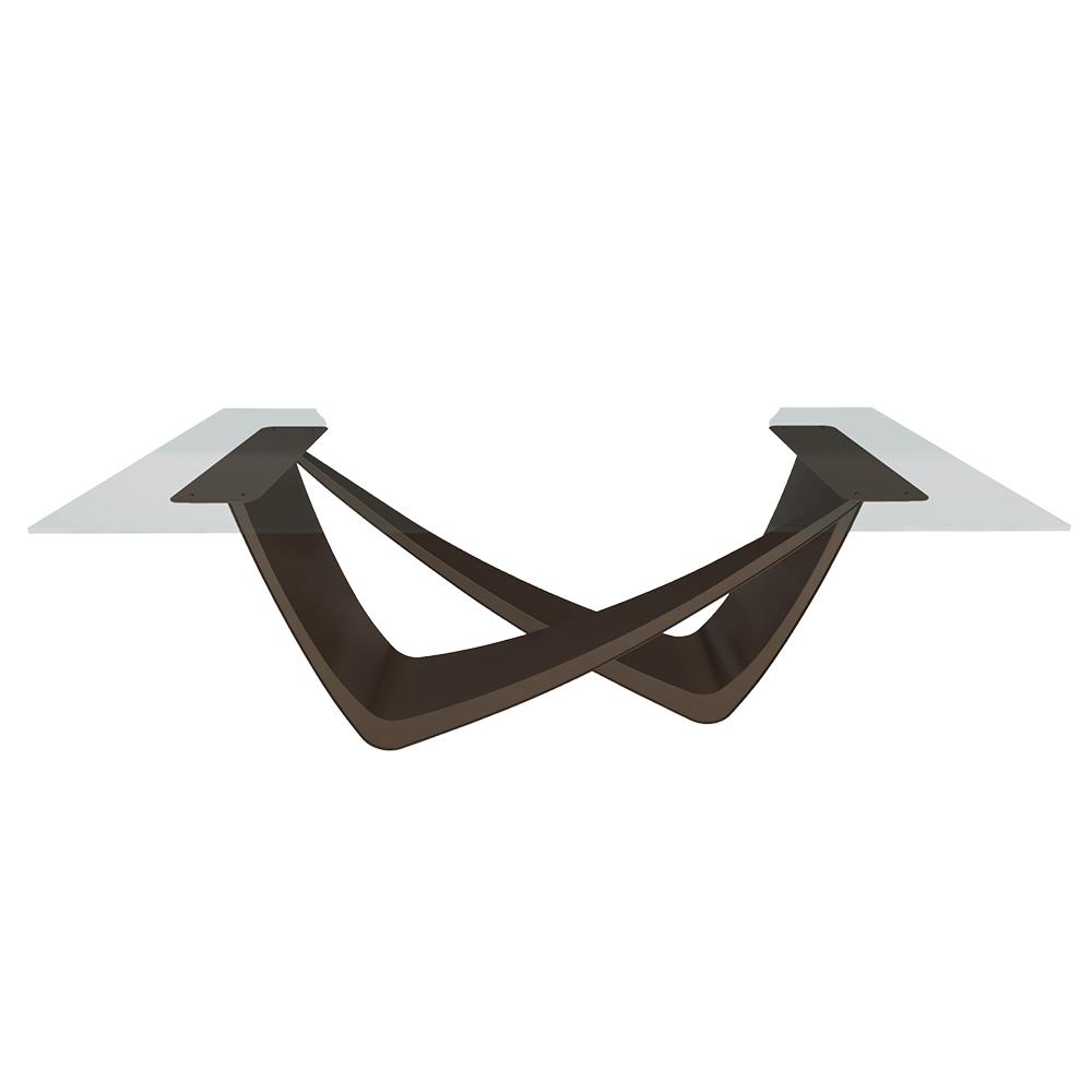 BONTEMPI table fixe rectangulaire avec structure laiton foncé BACH 53.80 200x100 cm (Transparent extra-clair - Struttura in acciaio laccato antracite e piano in cristallo)