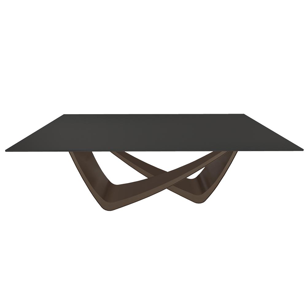 BONTEMPI table fixe rectangulaire avec structure laiton foncé BACH 53.80 200x100 cm (Anthracite mat - Struttura in acciaio laccato antracite e piano in cristallo velvet antigraffio)