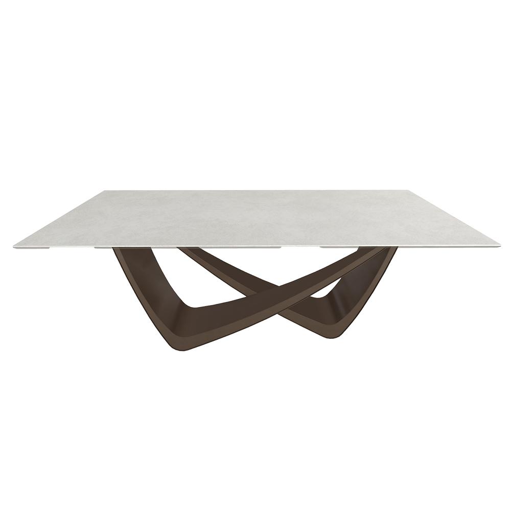 BONTEMPI table fixe rectangulaire avec structure laiton foncé BACH 53.80 200x100 cm (SuperCeramica bianco - Struttura in acciaio laccato antracite e piano in ceramica e cristallo)