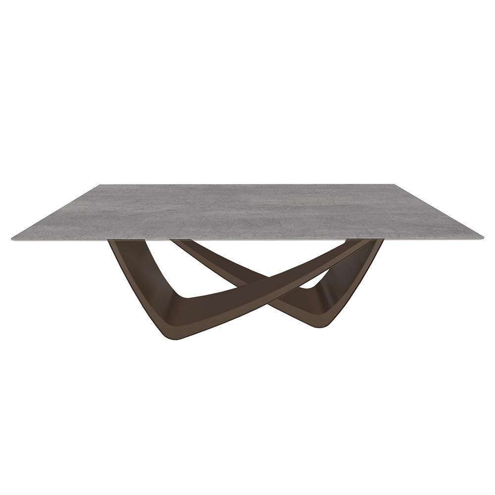 BONTEMPI table fixe rectangulaire avec structure laiton foncé BACH 53.80 200x100 cm (SuperCeramica grigio Savoia - Struttura in acciaio laccato antracite e piano in ceramica e cristallo)