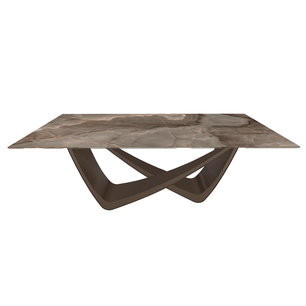 BONTEMPI table fixe rectangulaire avec structure laiton foncé BACH 53.80 200x100 cm (SuperMarmo Choco lucido - Struttura in acciaio laccato antracite e piano in ceramica e cristallo)