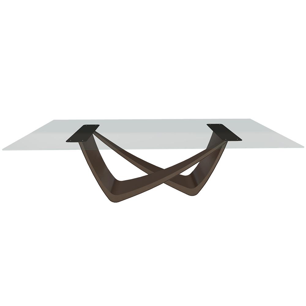 BONTEMPI table fixe rectangulaire avec structure laiton foncé BACH 53.82 250x100 cm (Transparent extra-clair - Struttura in acciaio laccato antracite e piano in cristallo)