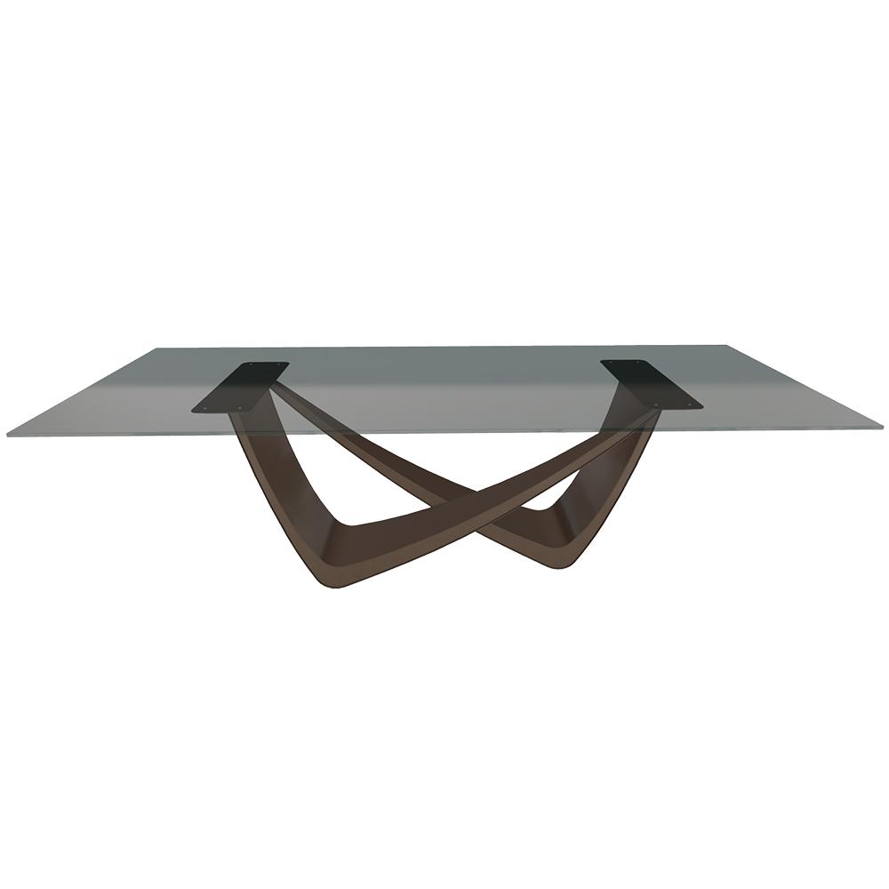 BONTEMPI table fixe rectangulaire avec structure laiton foncé BACH 53.82 250x100 cm (Transparent fumé - Struttura in acciaio laccato antracite e piano in cristallo)
