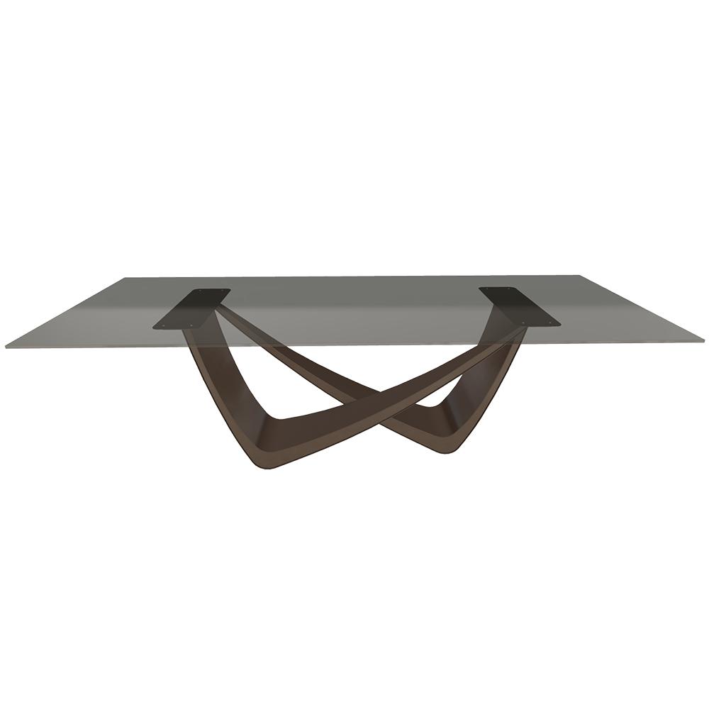BONTEMPI table fixe rectangulaire avec structure laiton foncé BACH 53.82 250x100 cm (Trasparente bronzo - Struttura in acciaio laccato antracite e piano in cristallo)