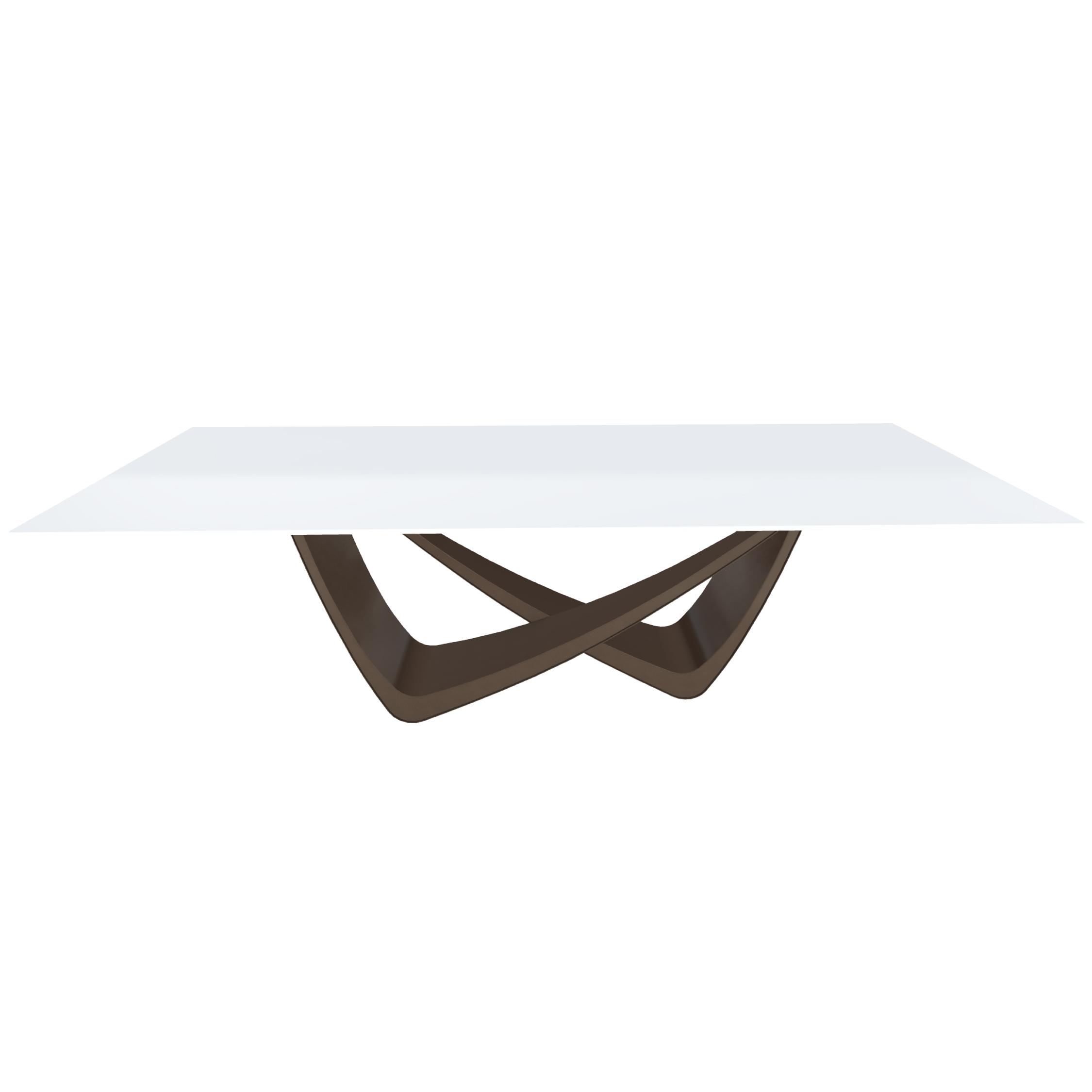 BONTEMPI table fixe rectangulaire avec structure laiton foncé BACH 53.82 250x100 cm (Laccato extra white lucido - Struttura in acciaio laccato antracite e piano in cristallo)
