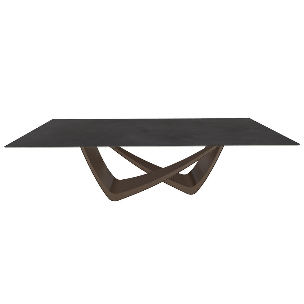 BONTEMPI table fixe rectangulaire avec structure laiton foncé BACH 53.82 250x100 cm (SuperCeramica antracite - Struttura in acciaio laccato antracite e piano in ceramica e cristallo)