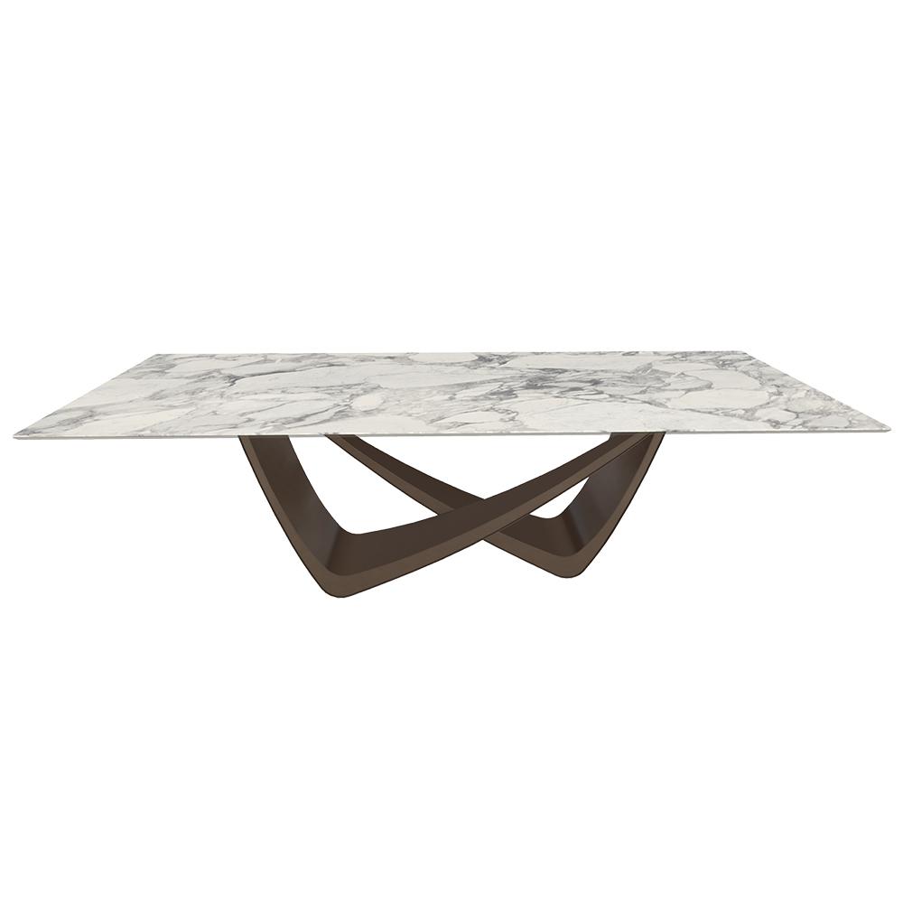 BONTEMPI table fixe rectangulaire avec structure laiton foncé BACH 53.82 250x100 cm (SuperMarmo Arabescato lucido lucido - Struttura in acciaio laccato antracite e piano in ceramica e cristallo)