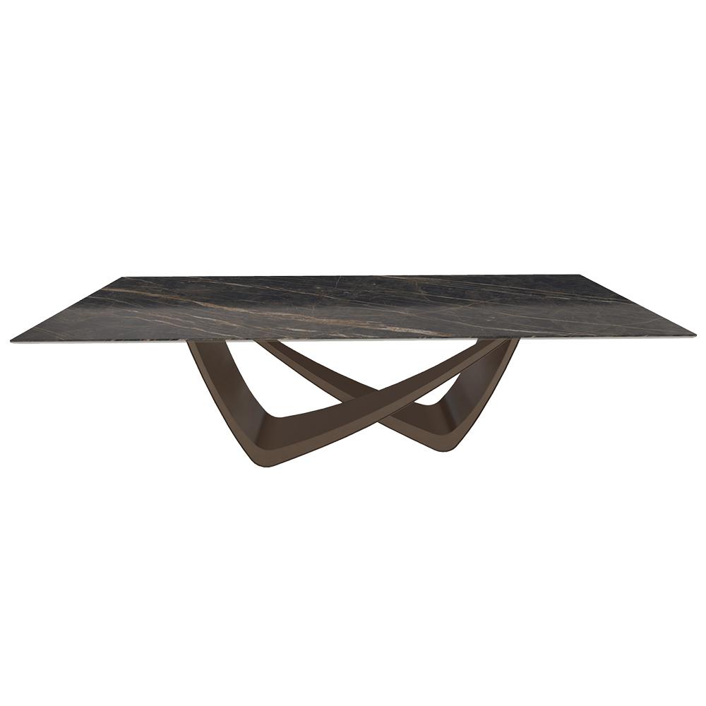 BONTEMPI table fixe rectangulaire avec structure laiton foncé BACH 53.82 250x100 cm (SuperMarmo Noir Desir lucido - Struttura in acciaio laccato antracite e piano in ceramica e cristallo)