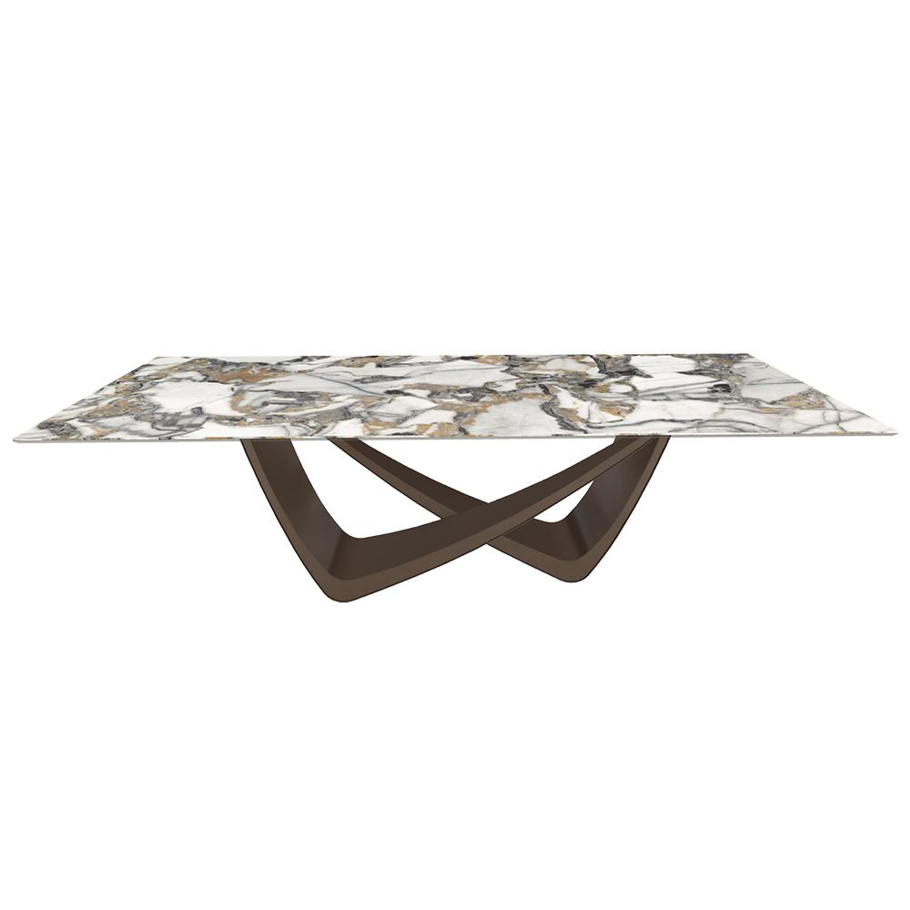 BONTEMPI table fixe rectangulaire avec structure laiton foncé BACH 53.82 250x100 cm (SuperMarmo Étoile Gold lucido - Struttura in acciaio laccato antracite e piano in ceramica e cristallo)