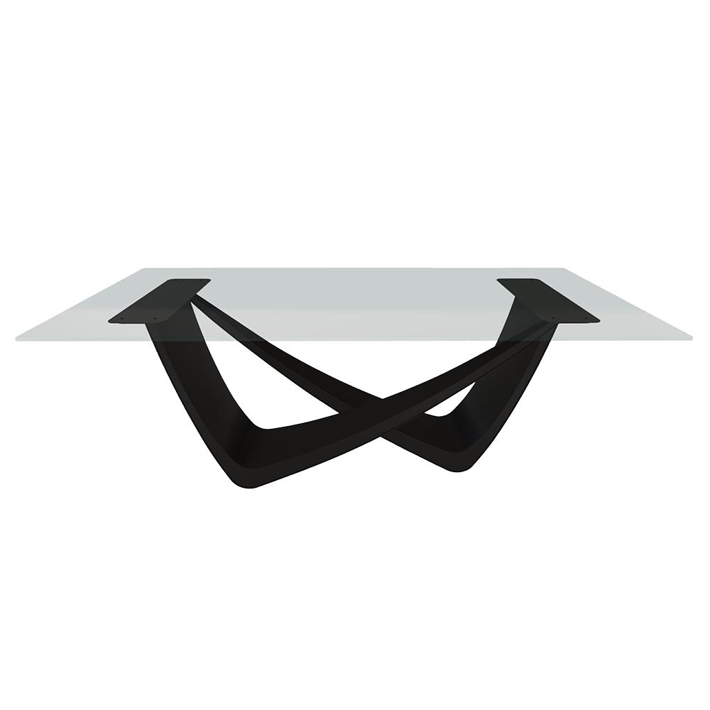 BONTEMPI table fixe rectangulaire avec structure noire matte BACH 53.80 200x100 cm (Transparent extra-clair - Struttura in acciaio laccato antracite e piano in cristallo)
