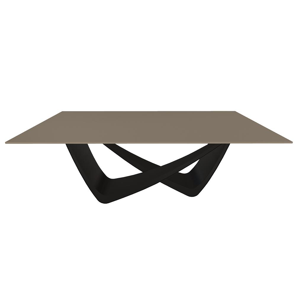 BONTEMPI table fixe rectangulaire avec structure noire matte BACH 53.80 200x100 cm (Gris tourterelle opaque - Struttura in acciaio laccato antracite e piano in cristallo velvet antigraffio)