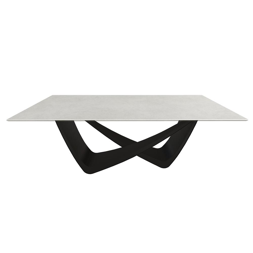 BONTEMPI table fixe rectangulaire avec structure noire matte BACH 53.80 200x100 cm (SuperCeramica bianco - Struttura in acciaio laccato antracite e piano in ceramica e cristallo)