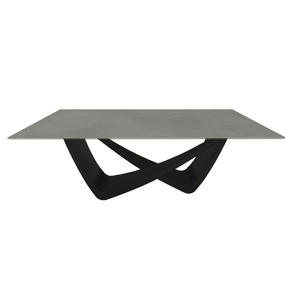 BONTEMPI table fixe rectangulaire avec structure noire matte BACH 53.80 200x100 cm (SuperCeramica sabbia - Struttura in acciaio laccato antracite e piano in ceramica e cristallo)