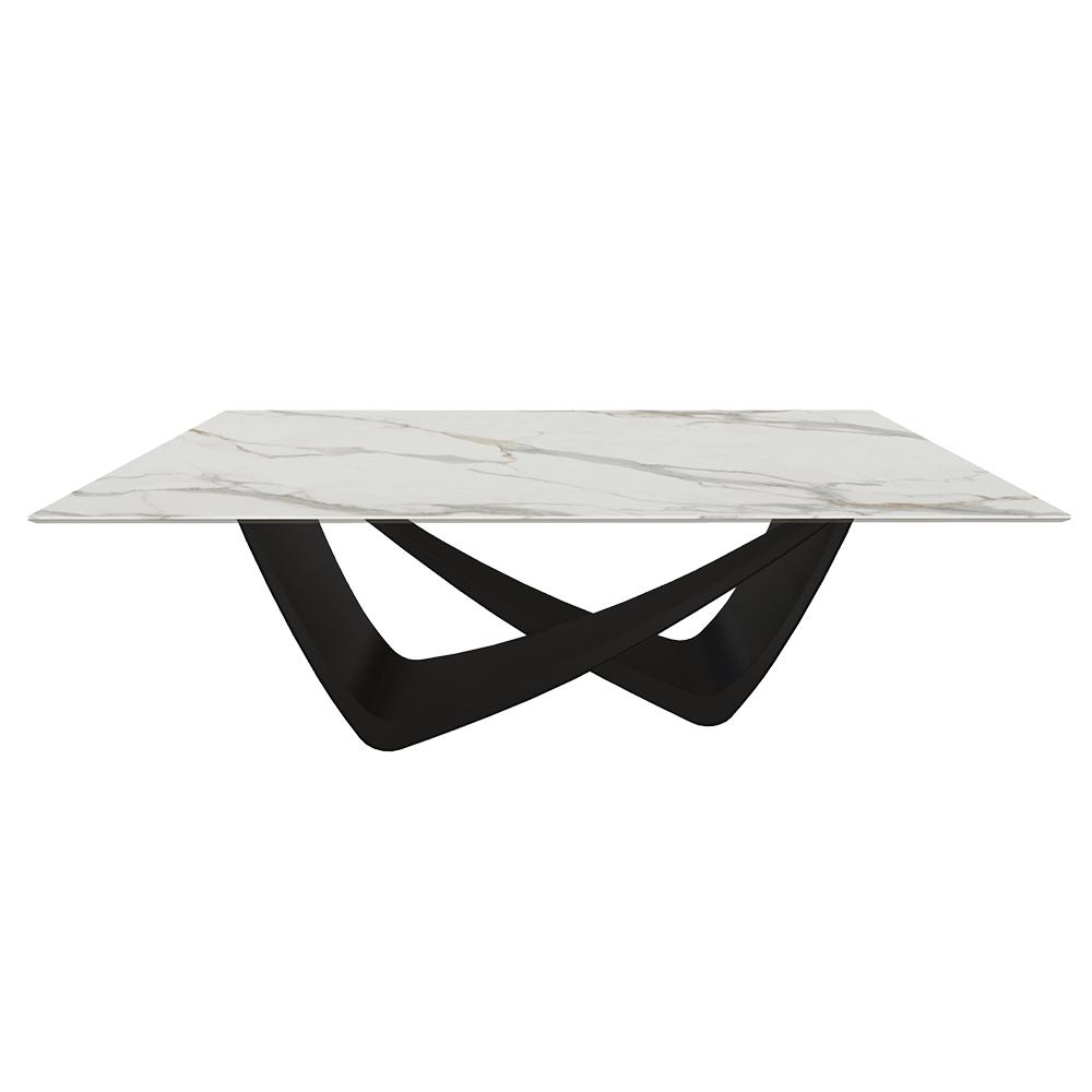 BONTEMPI table fixe rectangulaire avec structure noire matte BACH 53.80 200x100 cm (SuperMarmo Calacatta Supreme opaco - Struttura in acciaio laccato antracite e piano in ceramica e cristallo)