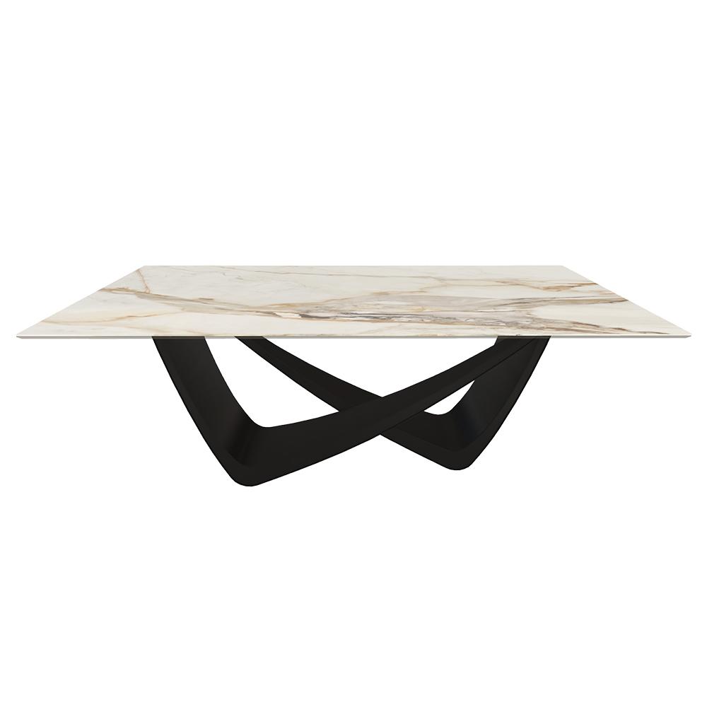 BONTEMPI table fixe rectangulaire avec structure noire matte BACH 53.80 200x100 cm (SuperMarmo Amber whisper lucido - Struttura in acciaio laccato antracite e piano in ceramica e cristallo)