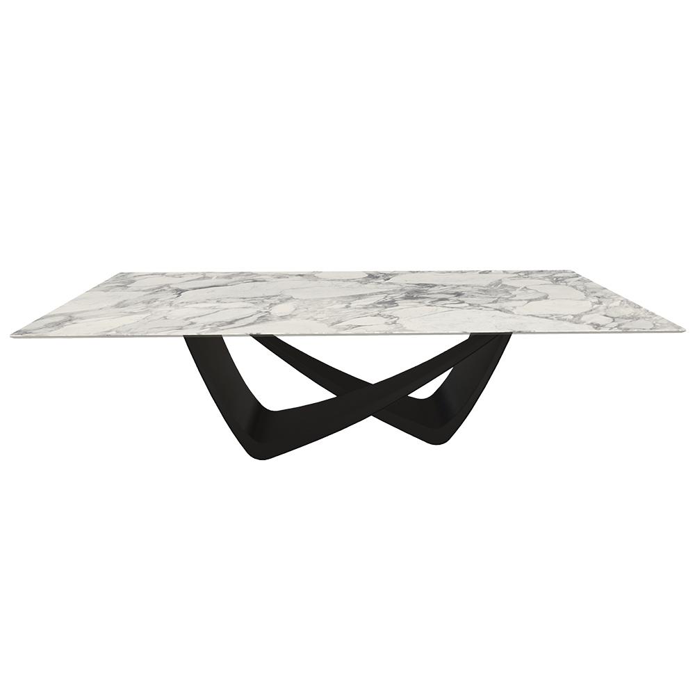 BONTEMPI table fixe rectangulaire avec structure noire matte BACH 53.82 250x100 cm (SuperMarmo Arabescato lucido lucido - Struttura in acciaio laccato antracite e piano in ceramica e cristallo)