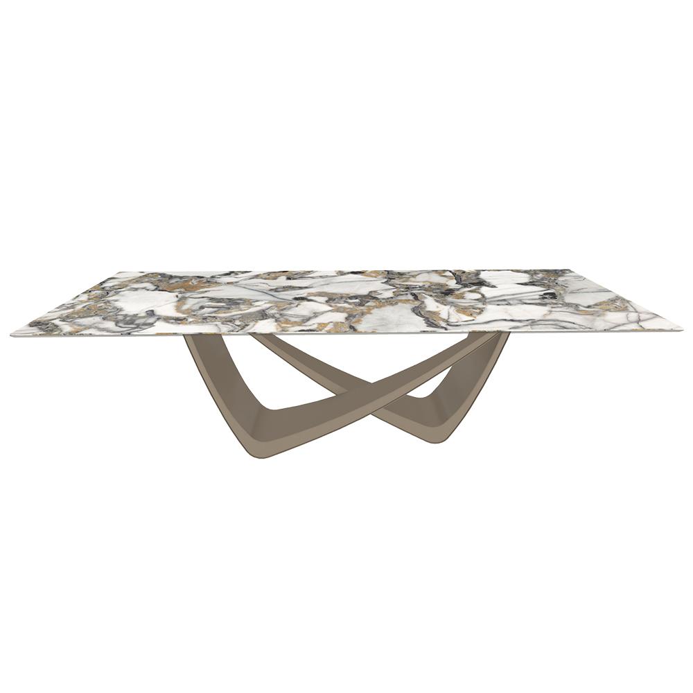 BONTEMPI table fixe rectangulaire avec structure sable BACH 53.82 250x100 cm (SuperMarmo Étoile Gold lucido - Struttura in acciaio laccato antracite e piano in ceramica e cristallo)