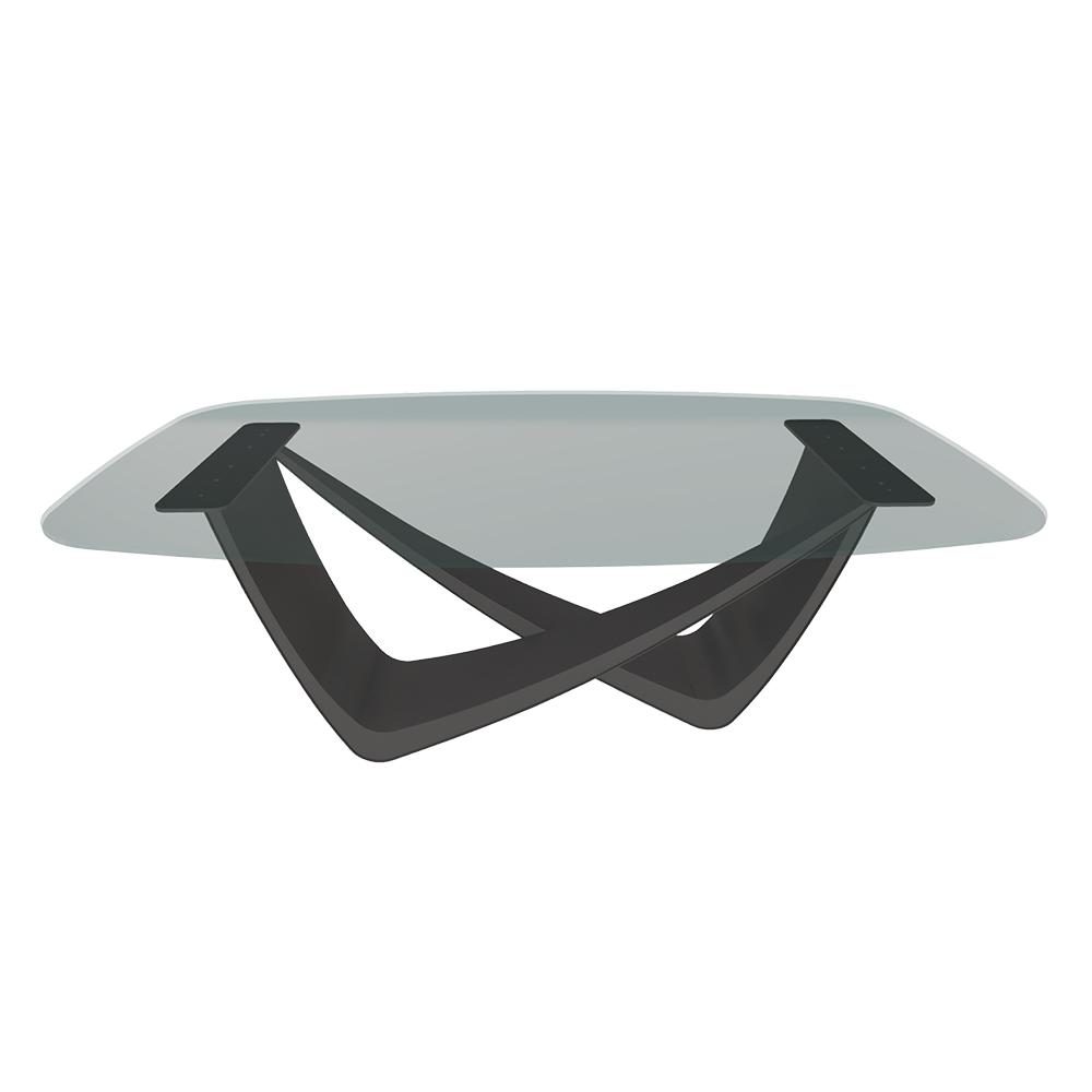 BONTEMPI table fixe tonneau avec structure anthracite BACH 53.75 200x116 cm (Transparent extra-clair - Struttura in acciaio laccato antracite e piano in cristallo)