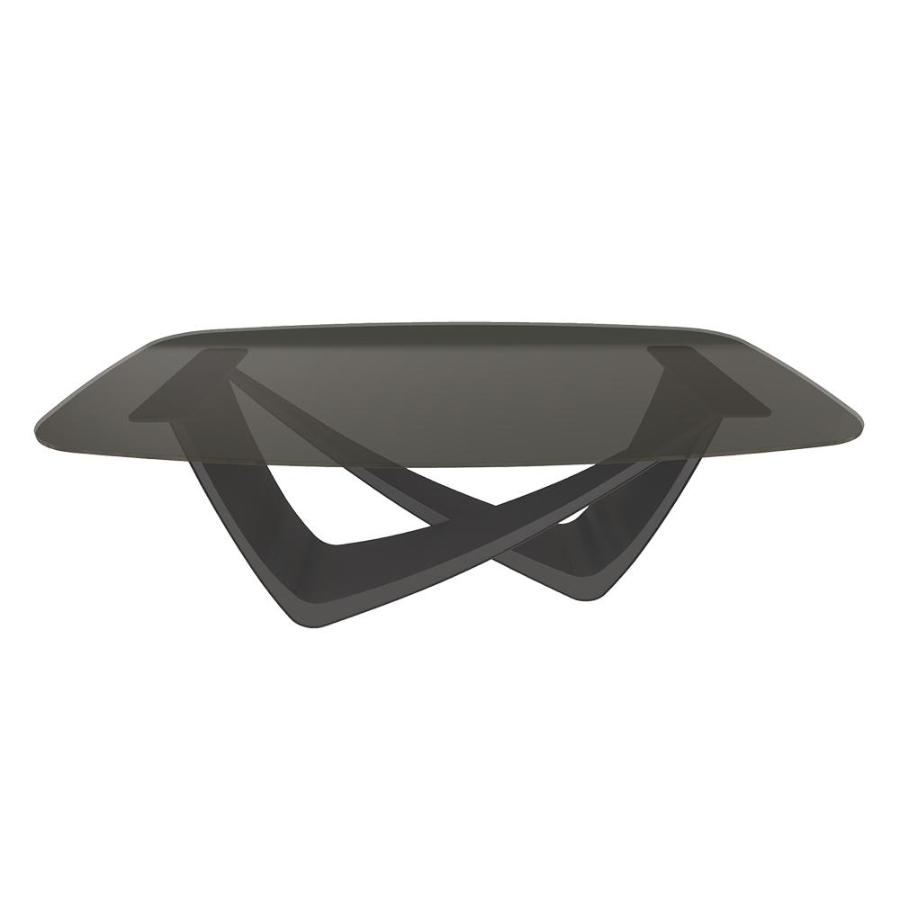 BONTEMPI table fixe tonneau avec structure anthracite BACH 53.75 200x116 cm (Trasparente bronzo - Struttura in acciaio laccato antracite e piano in cristallo)